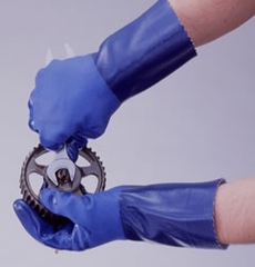 Găng tay chống dầu, được gia tăng độ bền và được gia cố bao đầu ngón tay.
